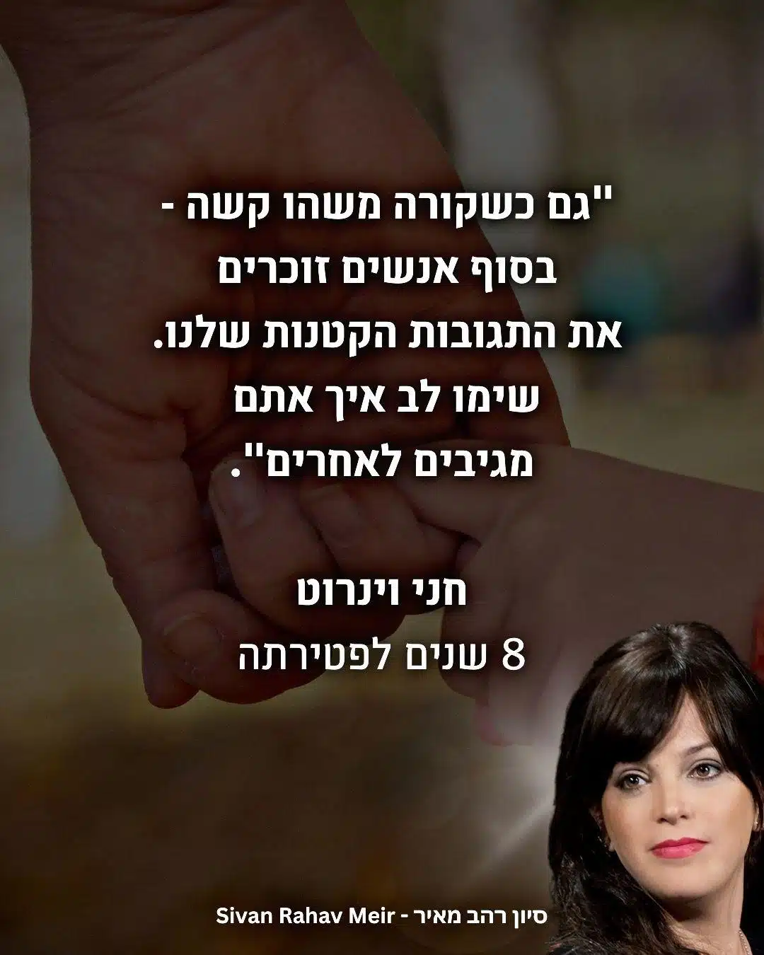 "גיליתי תופעה שהדהימה אותי. בכל פעם שמישהו משתף אותי בבשורה קשה, במשך רוב השיחה הוא רק מתאר איך הגיבו והשתתפו מי שסביבו.