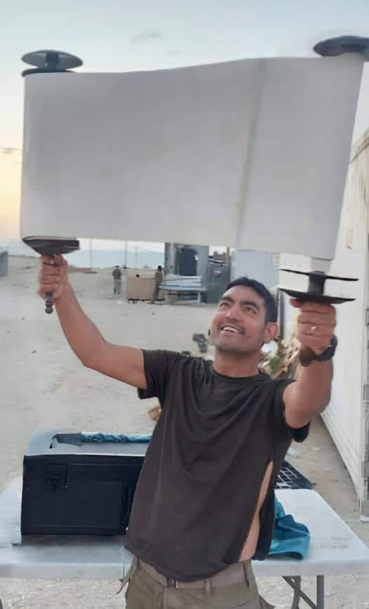 אז סיימנו ואנחנו מתחילים שוב בעזרת השם. מצרף תמונה שלי מקריאת התורה בעזה. חזק חזק ונתחזק".