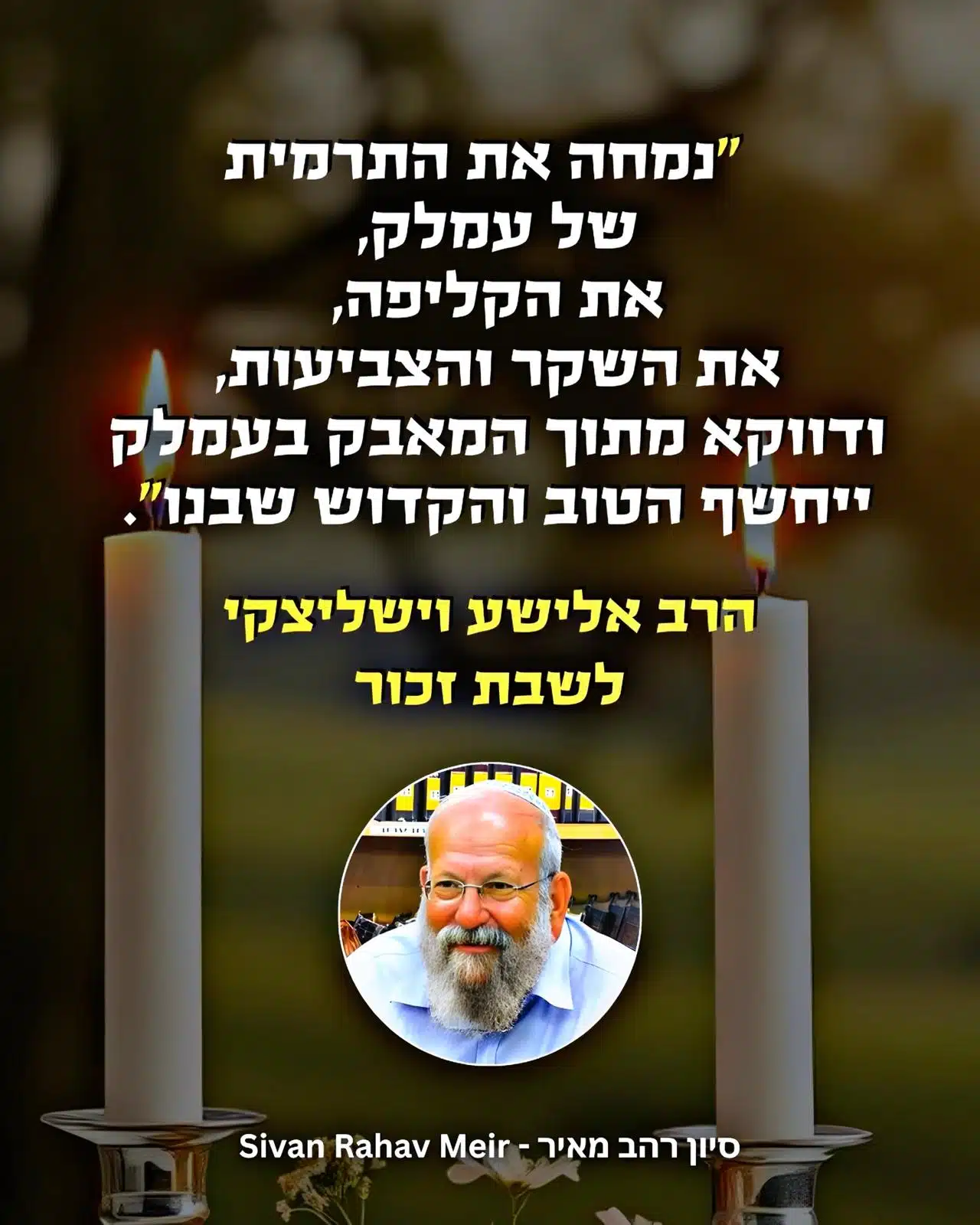 נמחה את התרמית של עמלק, את הקליפה, את השקר והצביעות, ודווקא מתוך המאבק בעמלק ייחשף הטוב והקדוש שבנו.