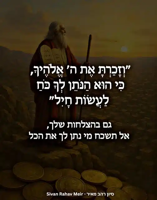 "וְזָכַרְתָּ אֶת ה' אֱלֹהֶיךָ, כִּי הוּא הַנֹּתֵן לְךָ כֹּחַ לַעֲשׂוֹת חָיִל".