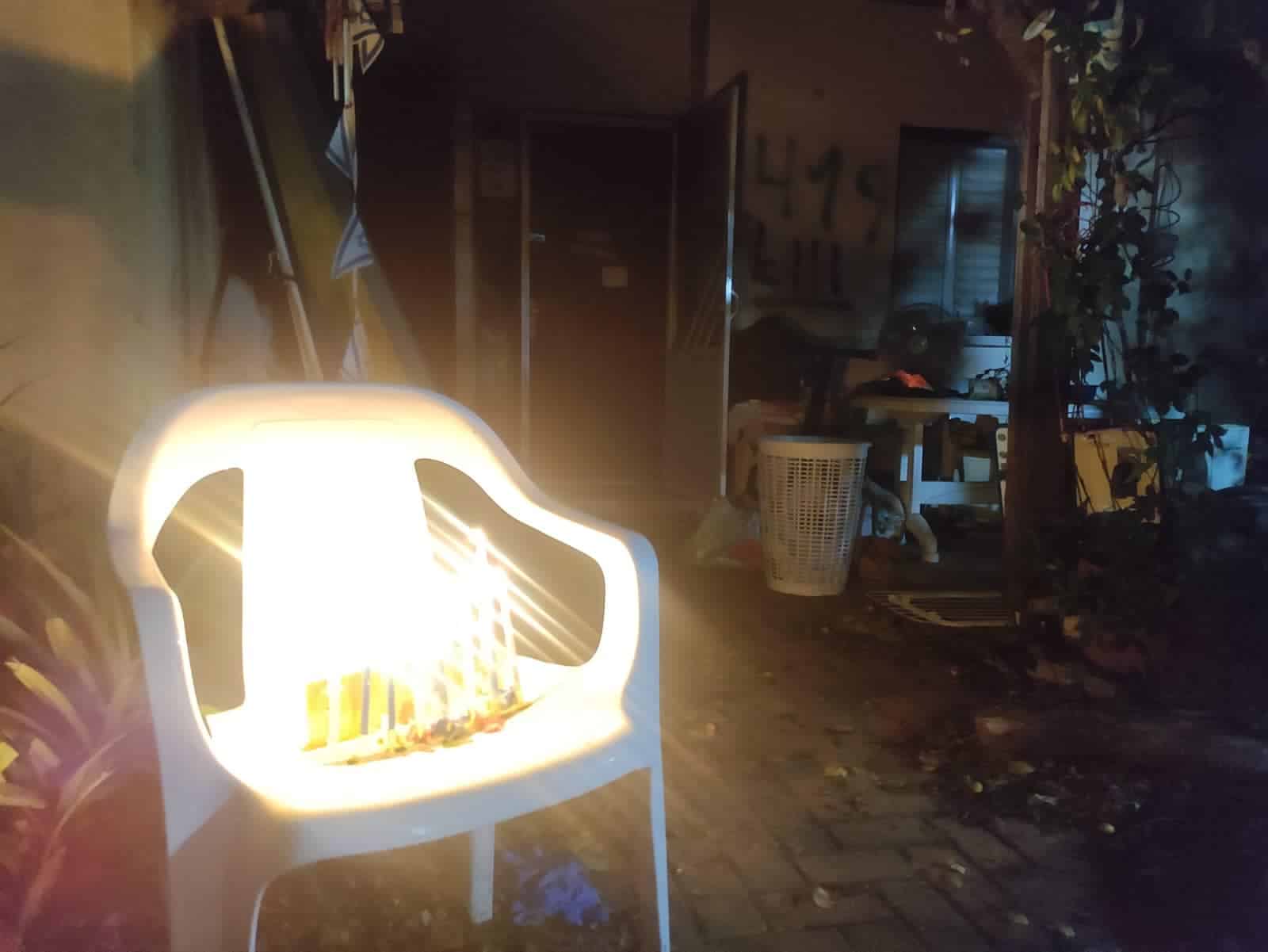"שלום סיון, השתדלנו בכל ערב השבוע אבל לא תמיד הצלחנו. הלילה הצלחנו: בקיבוץ חולית, בכניסה לכל בית שבו נרצח מישהו - דולקת הערב חנוכייה מלאה, עם שמונה נרות. הרגשנו שאלה גם קצת נרות נשמה, ואמרנו לעצמנו שמעט מן האור ידחה הרבה מן החושך. בשנה הבאה הם ידליקו כאן בעצמם, בעזרת השם, במציאות אחרת. חנוכה שמח. גדוד 630, פלוגה ב'".