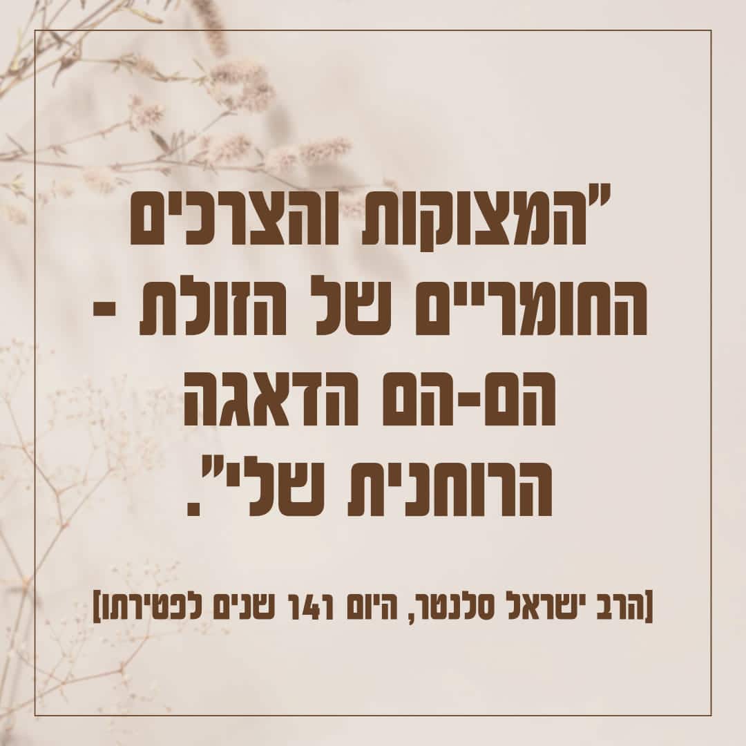 על דאגה, תיקון ואהבה. הנה רק כמה משפטים שאמר הרב ישראל סלנטר, מייסד "תנועת המוסר", תנועת תיקון עצמי בעולם היהודי, שנפטר היום לפני 141 שנה: