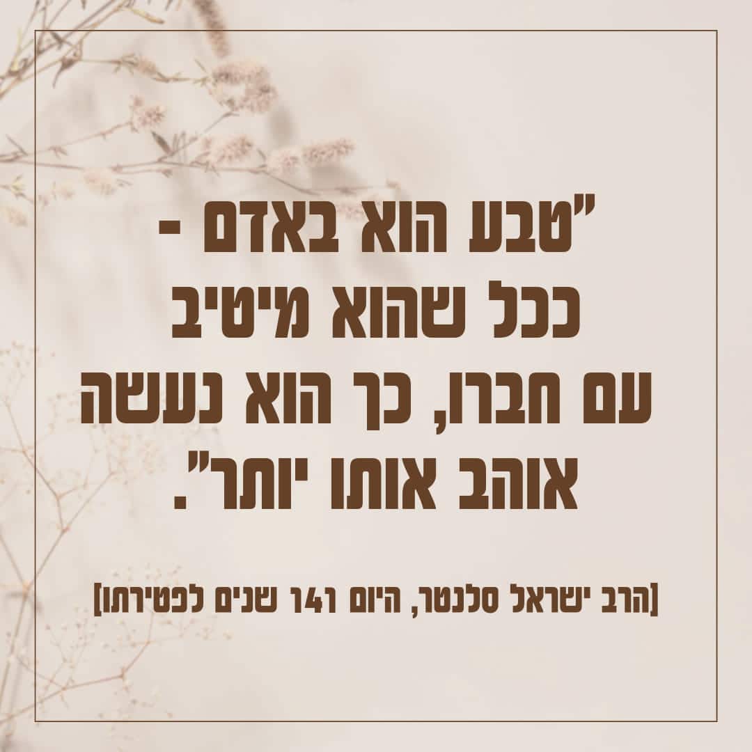 "טבע הוא באדם – ככל שהוא מיטיב עם חברו, כך הוא נעשה אוהב אותו יותר".