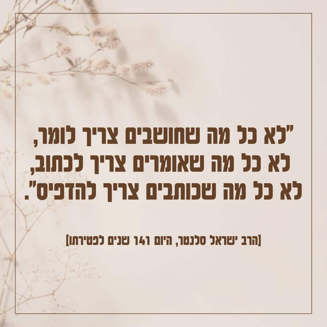 "לא כל מה שחושבים צריך לומר, לא כל מה שאומרים צריך לכתוב, לא כל מה שכותבים צריך להדפיס".