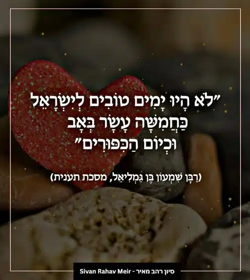 2. On Tu B'Av, after entering the land and settling in it, all the tribes began to marry each other. Thus a phenomenon that caused tension and separation between the tribes of Israel was abolished.