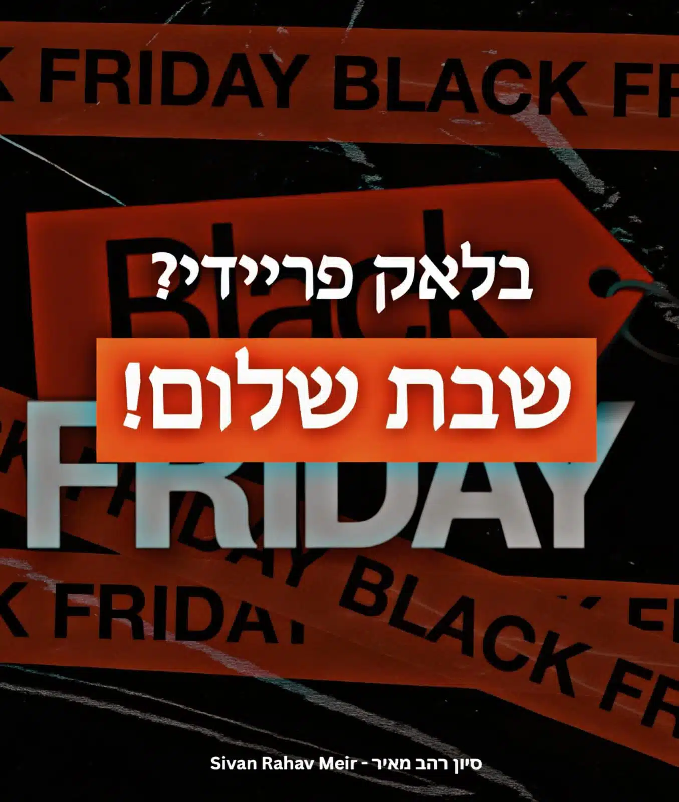 Here's a beautiful idea I heard from Rabbi Lior Lavi: Pay attention to the hidden message that this day transmits to us: panic, anxiety, and fear of missing out. Consumer culture creates a cult: waves of urgent shopping, with excitement, alarm, urgency, a sense of worry and also a sense of meaning that one gets from purchasing. It's not just a sale, it's a deeper emotion.