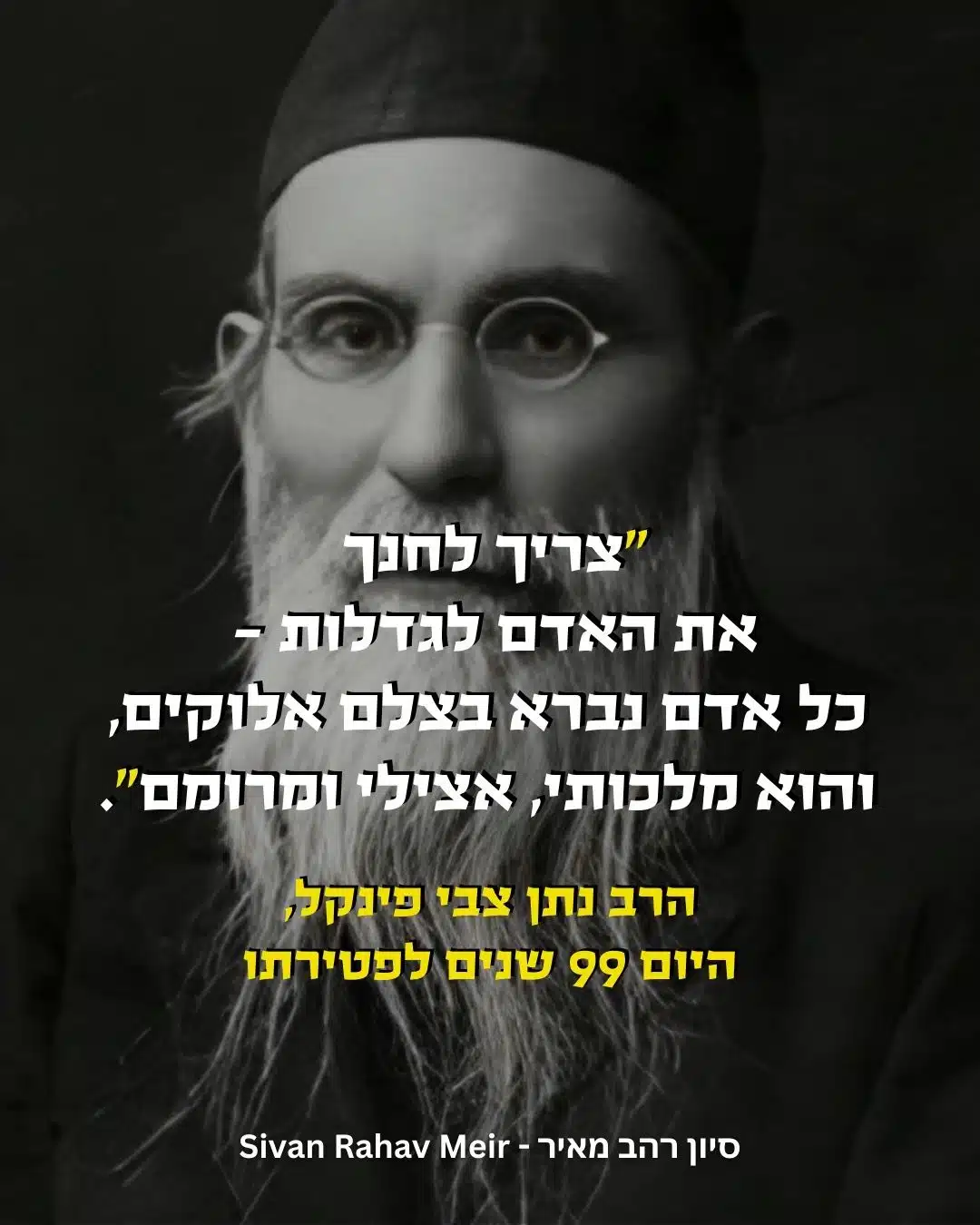 Are you familiar with the concept of the “greatness of man”? Today we mark the yahrzeit of Rabbi Nosson Tzvi Finkel zt”l, who initiated an educational approach in the Jewish world based on this idea. He passed away 99 years ago, but it’s remarkable how relevant his approach remains to our lives today: