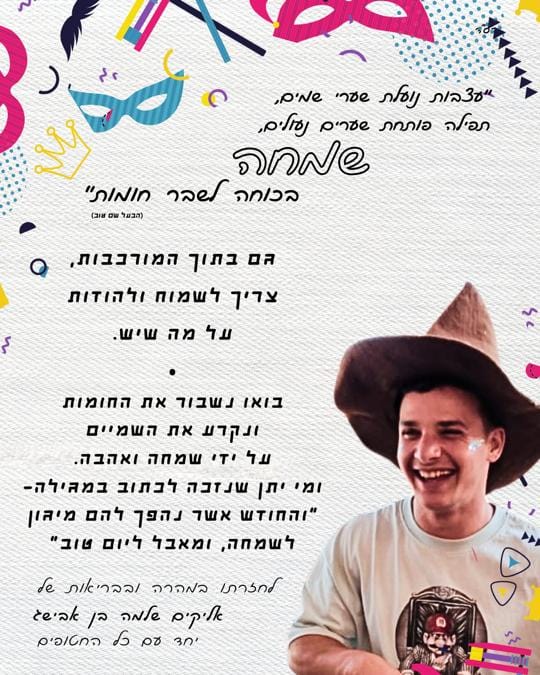 If this sounds confusing, it’s absolutely not! We believe that not only is it a mitzvah to be happy, but that happiness has the power to transform our reality, to reach the highest levels of heaven, to break through all barriers and rescue us from our distress.